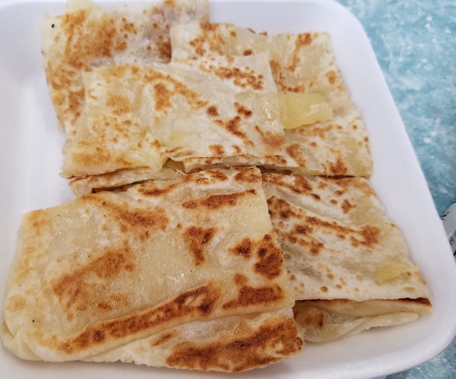 Eventually we got hungry. Actually, famished after expending so many calories. We still were on the lookout for the pirates cove but kept walking towards food. We decided to go for Indian food as we figured we’d like to see what it would be like in Hong Kong. I love Indian food. Have eaten as far as I can remember. I have had great Indian food and have had buffets that have sent me to the emergency room. None of that stops me from trying it again and again wherever I go. And while I have had a long history with Indian food, I had never had pineapple paratha. Actually, I have never even seen that. Thus, I had to have it. And it was delicious.