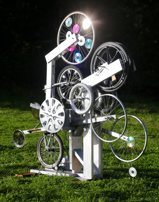 They each mounted their section of the apparatus. They peddled and peddled turning all the wheels in a slightly off-kilter rhythm. They watched the dawn come and people start milling about.