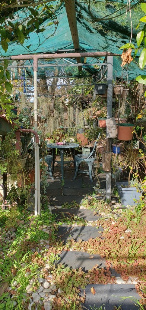 That is why she kept an homage to nature in her backyard. It was both an escape and a reminder of the fragility of it all. It was a place to tinker and create as well as a place to make sure she was protected. It was a cacophony of emotions and inner-driven directives. Off she went again in the morning to experience a vast cauldron of thoughts, joys, and fears.